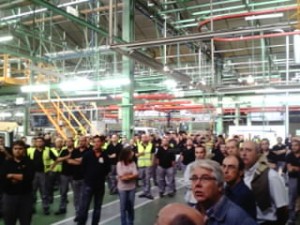 En la asamblea conjunta que se desarrolló a continuación con los trabajadores de la planta, los sindicatos informaron del retroceso que para los derechos de los trabajadores va a suponer la reforma laboral, ya que no servirá para crear empleo ni para estabilizrlo sino que, por el contrario, se utilizará para abaratar el despido.