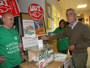 El Secretario General de UGT CyL, Agustín Prieto, ha participado en la Consulta Ciudadana por la Educación, campaña con la que la Comunidad Educativa rechaza plenamente los recortes y reformas educativas con las que el Gobierno pretende la vuelta a un sistema basado en la selección del alumnado en función del nivel social y económico de sus familias.