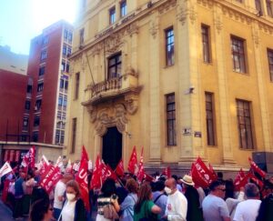 UGT y CCOO se han concentrado hoy frente a las sedes de la patronal, bajo el lema “Salario o Conflicto”, ante la negativa de la CEOE de sentarse a negociar el Acuerdo Estatal de Negociación Colectiva que recoja la subida salarial y las cláusulas de revisión.