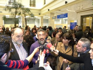 En el encierro de Valladolid, los Secretarios Provinciales de UGT y Comisiones, Luciano Sinovas y Antonio Díez, se han reunido con la Directora del INSS, Paula Roch, a la que han hecho entrega de un escrito reivindicativo con las propuestas de ambos sindicatos. En la protesta participaban también el Secretario Regional de Política Institucional, Oscar Lobo, la Secretaria Regional de Organización, Luz Blanca Cosío, y la Secretaria Regional Para la Igualdad, Patricia García.