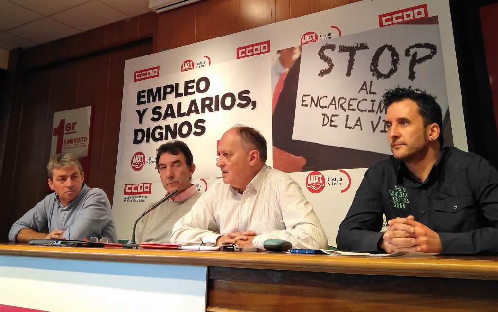 Los Secretarios Generales de UGT y CCOO en Castilla y León han presentado hoy el calendario de movilizaciones y las razones por las que se convocan las concentraciones de los próximos 19 y 22 de febrero en Castilla y León, como parte de la campaña confederal.