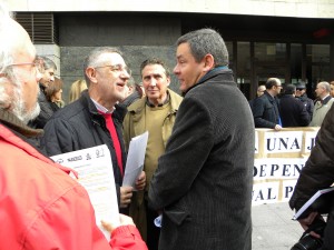 UGT, junto con CCOO, CSIF, y STAJ, se ha movilizado hoy, coincidiendo con la huelga convocada por asociaciones de jueces y fiscales contra la privatización de la Administración de Justicia, la Ley de Tasas, la reforma de la LOPJ y en defensa del empleo. El Secretario Regional de UGT en Castilla y León, Agustín Prieto, ha participado esta mañana en la concentración convocada en la sede de los Juzgados de Valladolid y ha defendido una alternativa a la privatización, contra la modificación unilateral de las condiciones de trabajo y por una apuesta decidida por el diálogo y la negociación en este sector. “Que todos los colectivos de la Justicia compartan ahora muchas de las reivindicaciones, a pesar de las diferencias que persisten con jueces y Fiscales, no puede ser, a juicio del Sindicato, un problema, sino parte de la solución”.