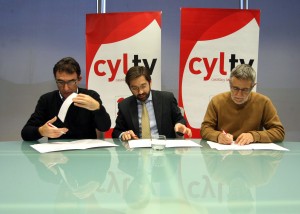 Los Secretarios Generales de UGT y CCOO en Castilla y León, Agustín Prieto y Ángel Hernández, y el Director General de Radio Televisión Castilla y León, Eduardo Álvarez, han rubricado un acuerdo de colaboración por el que la cadena emitirá una serie de reportajes y entrevistas para difundir las distintas actuaciones de ambos Sindicatos en el campo del Diálogo Social de Castilla y León, especialmente sobre Formación, Empleo, Igualdad y Seguridad y Salud Laboral.