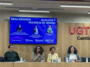 UGT Castilla y León ha celebrado hoy una mesa redonda sobre igualdad y violencia de género que ha contado con la participación de Pilar Martín Nájera, fiscal jefa del Tribunal Supremo y, anteriormente, fiscal de sala delegada contra la Violencia sobre la Mujer de la Fiscalía General del Estado; José Segoviano Astaburuaga, inspector de Trabajo y Seguridad Social, y Ana Gaitero Alonso, periodista y presidenta de la Asociación de periodistas feministas de Castilla y León. El objetivo ha sido abordar la violencia machista desde el ámbito jurídico, laboral y de los medios de comunicación.