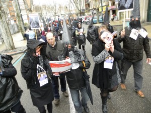 Trabajadores del Hospital Clínico Universitario, la Diputación Provincial y la Universidad de Valladolid han escenificado este mediodía, en la capital vallisoletana, su “Via Crucis” particular en protesta por los recortes del gobierno y en defensa de los servicios públicos.